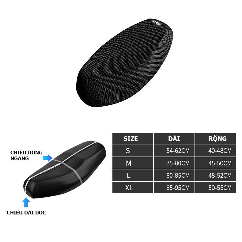 + Size XL thông thường là các loại xe Lead - Nouvo LX 135 - Dylan - @ - Elizabeth - Hayate, SH - PS - Shark - Lead - PCX - SCR (nên đo chiều dài và rộng của yên xe)